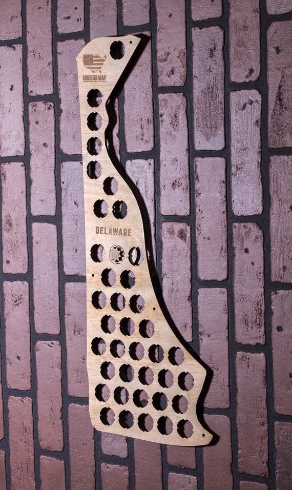 Delaware Beer Bottle Cap Map Made of Birch Wood Custom Engraving