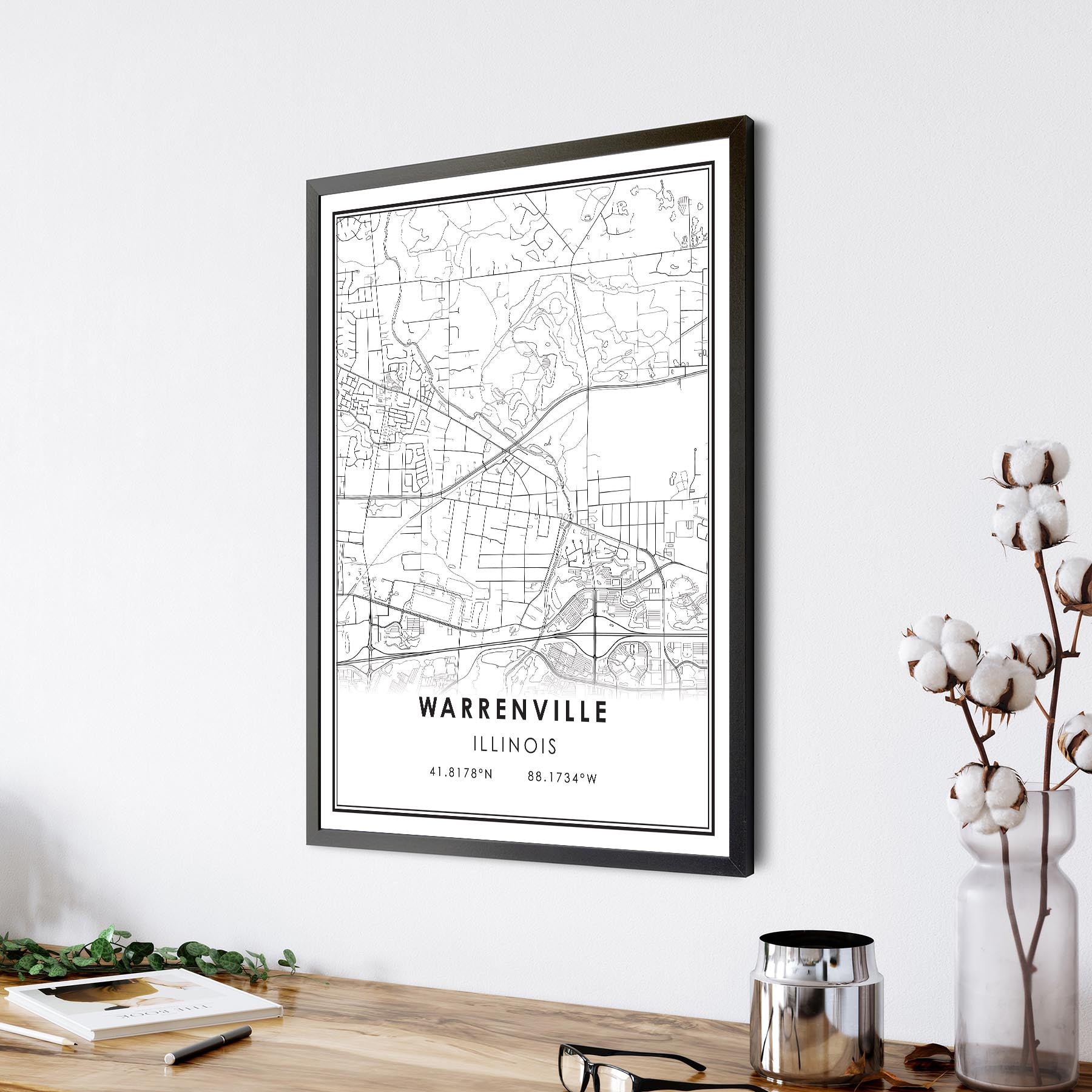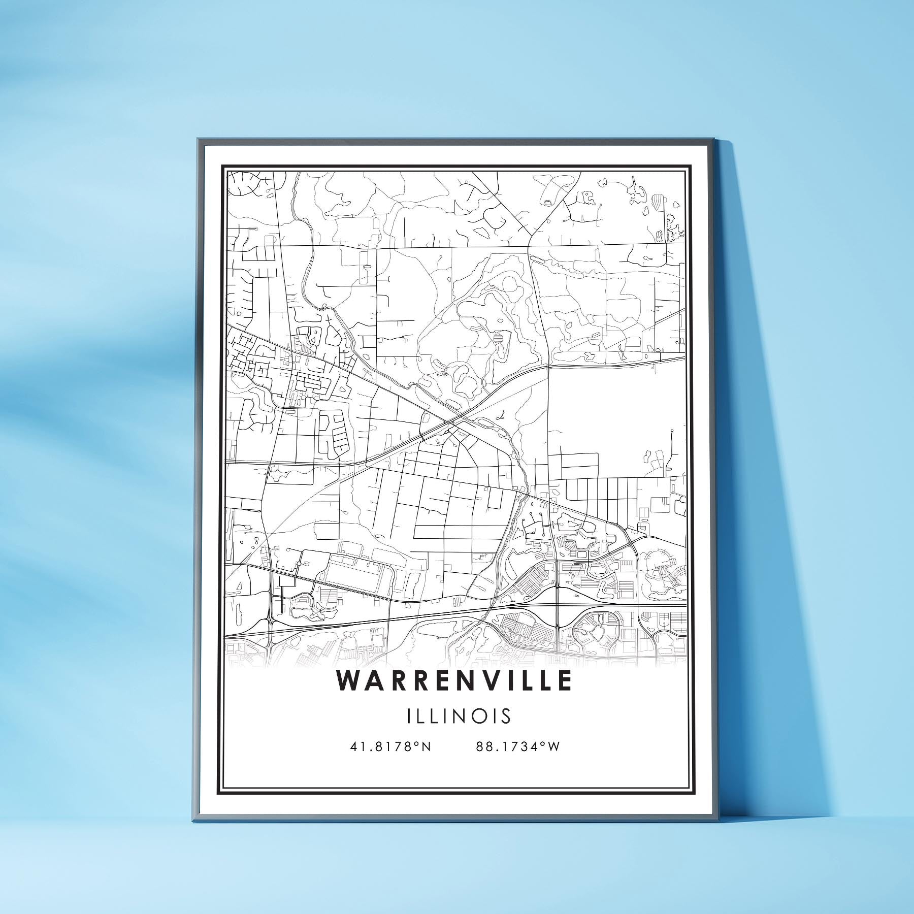 Warrenville, Illinois Modern City Map Print | City Streets Map