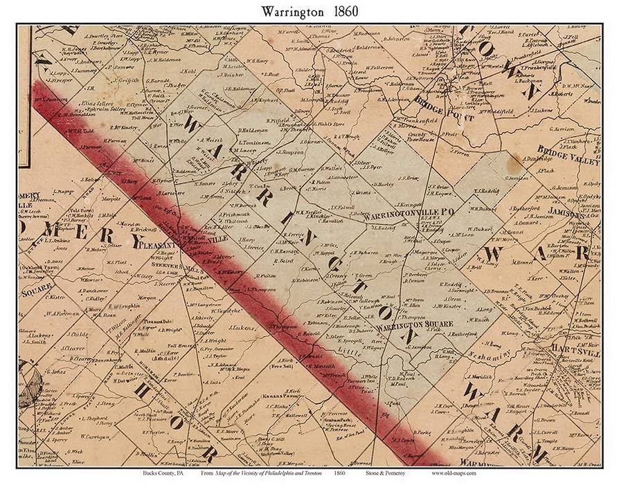 Warrington 1850 Old Town Map With Homeowner Names Pennsylvania