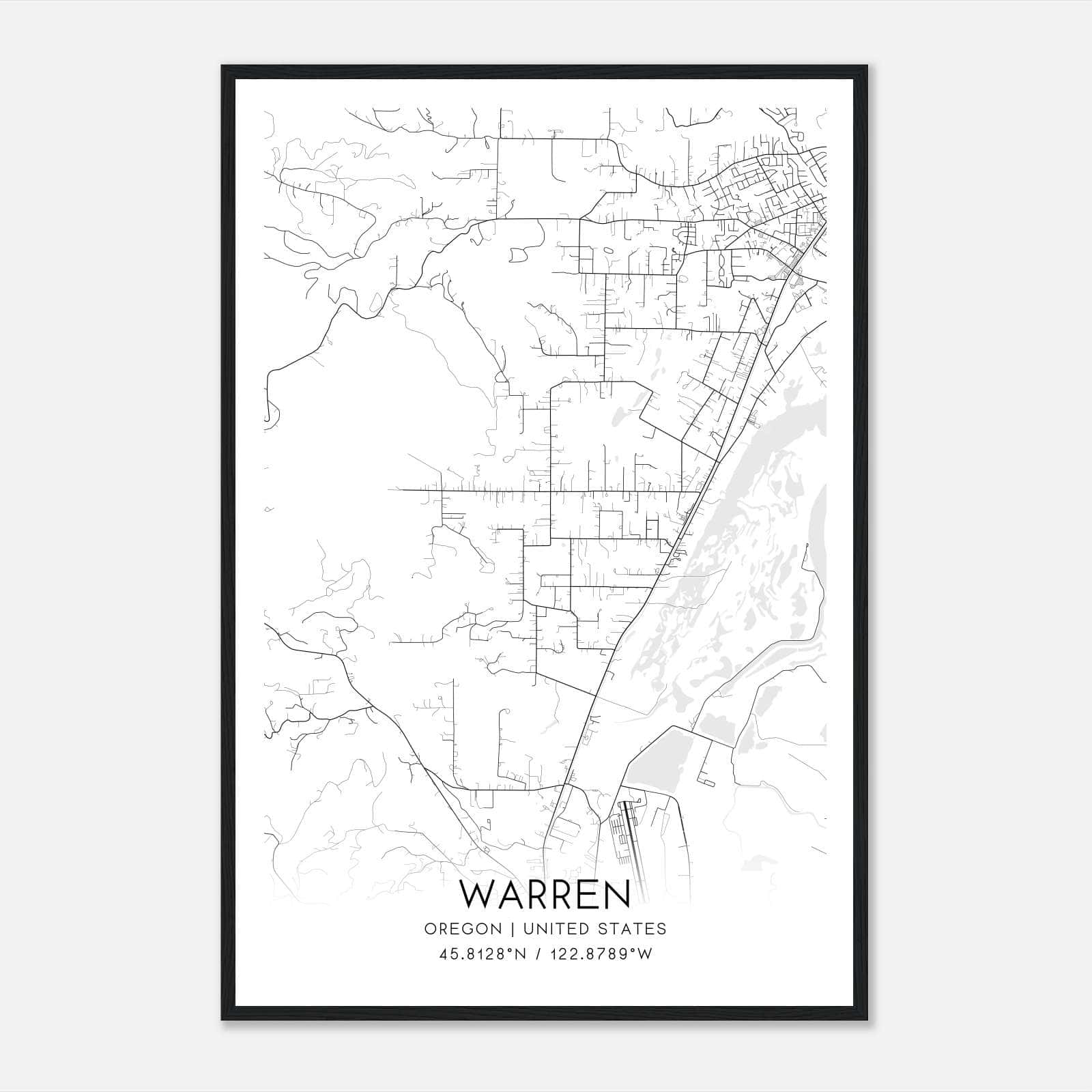 Warren Oregon Map Poster, Modern Home Decor Wall Art Print