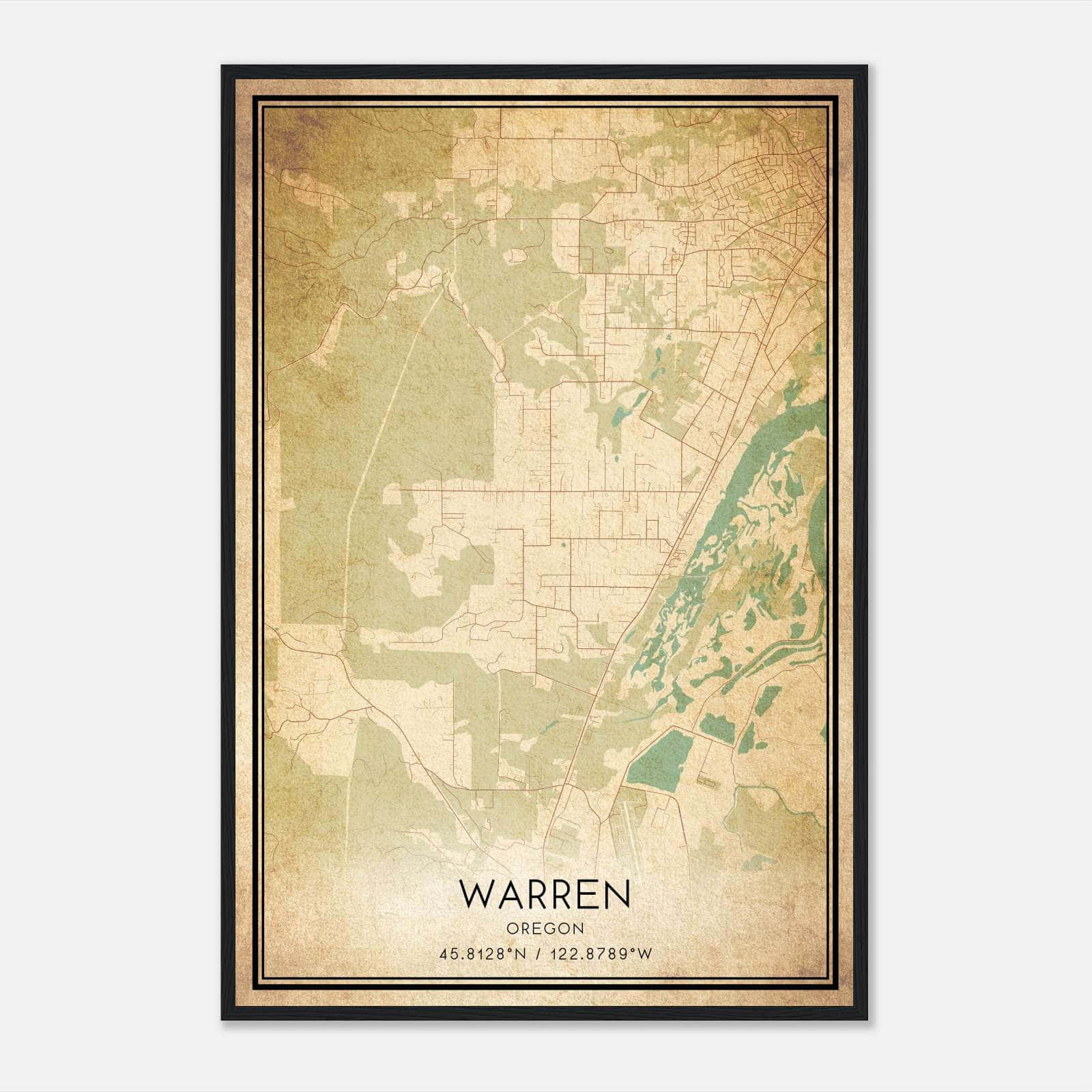 Vintage Warren Oregon Map Poster, Warren OR City Road Wall Art